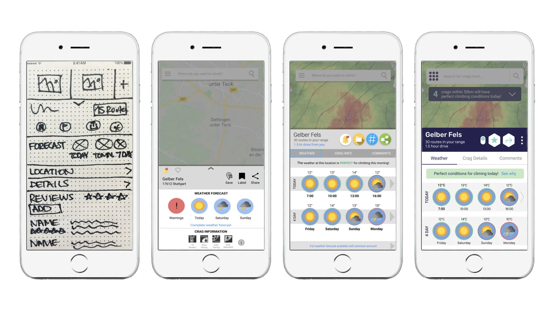 A dive into my design thinking process to create a weather app for rock climbers.