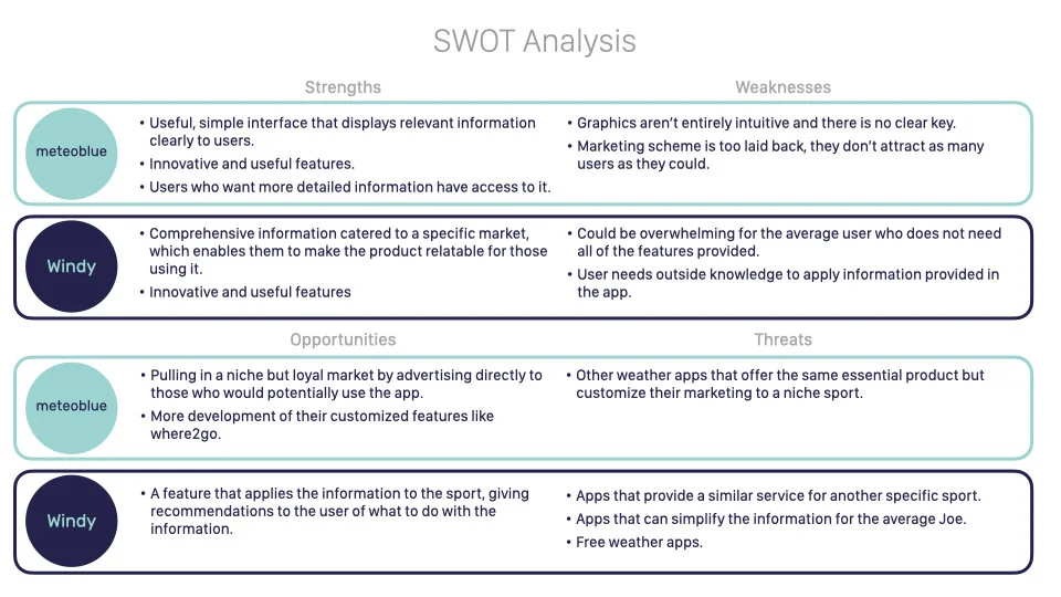 I conducted a detailed competitor analysis because I wanted to know what kind of apps were already providing weather services to climbers in order to identify potential opportunities. I then did a UX analysis of those apps, which enabled me to identify the key feature, how they ensured high usability for the users.