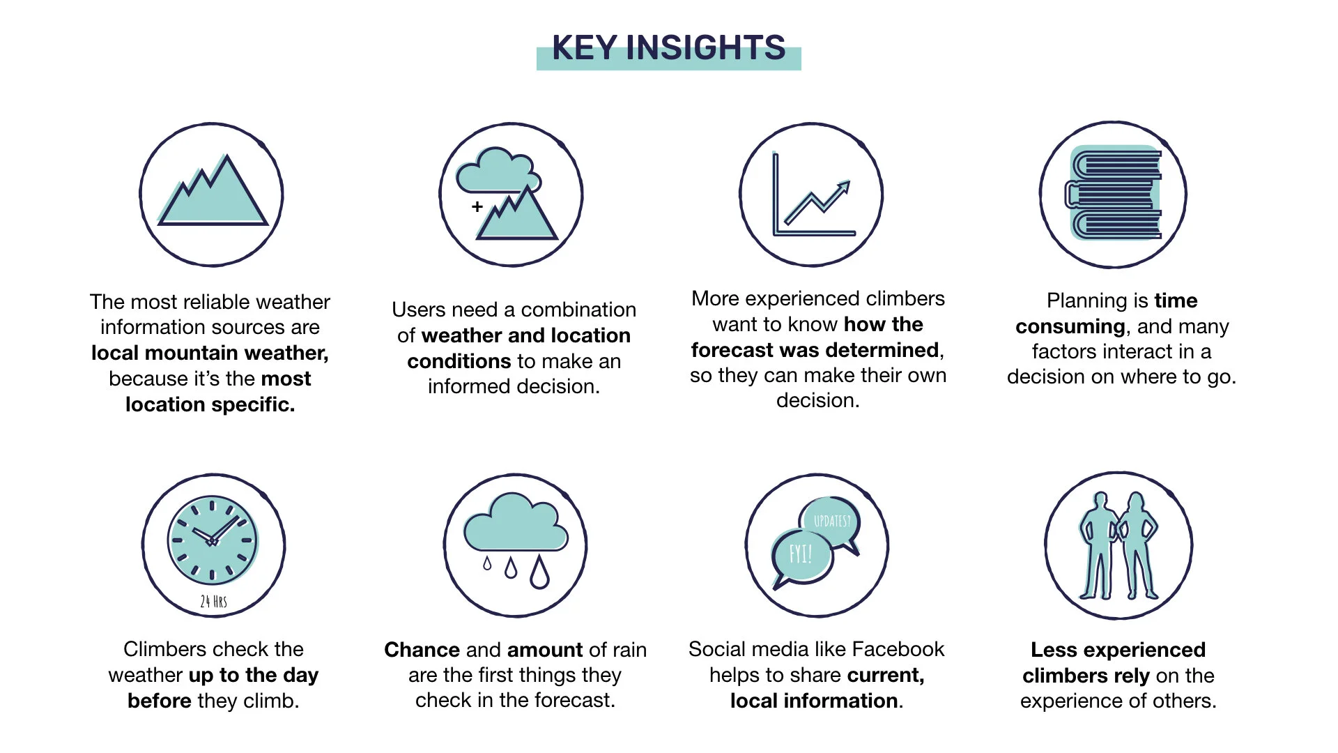 Outdoor climbers need an accurate source of location-specific weather information which enables them to quickly make well informed decisions on where to climb, because their time, energy and safety depends on making the right choice.