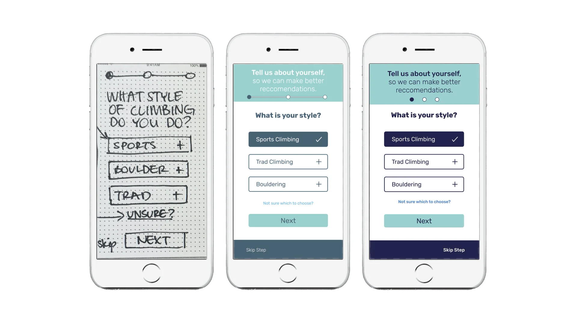 I then conducted 6 in-person user interviews, which gave me the opportunity to dig deeper into their answers, see the behavior and reactions of participants, and get face to face with the climbing community.