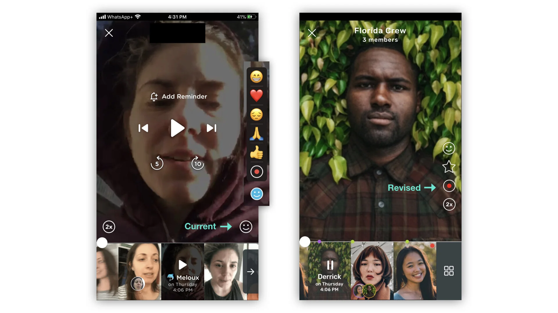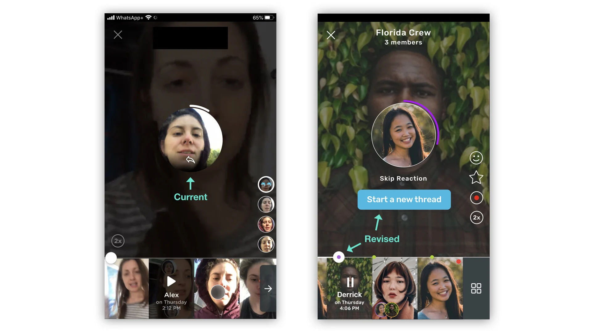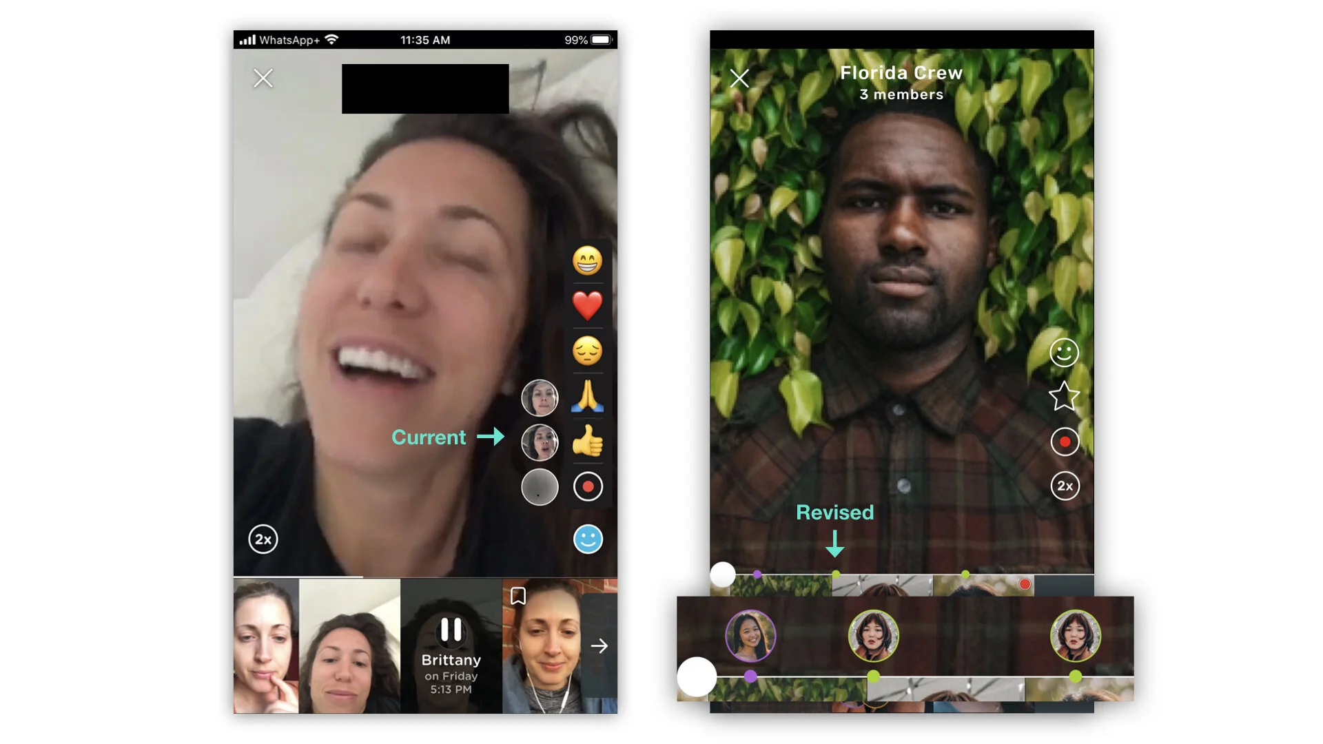 In all the time I have used the app, I have used the emoji reactions only a handful of times. As for the video reactions, two times maximum. They don’t serve any real value for me, and have frustrated me more than anything when I have used them. For this redesign, I asked myself why this was the case, and how to make them more useful.